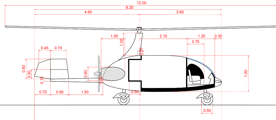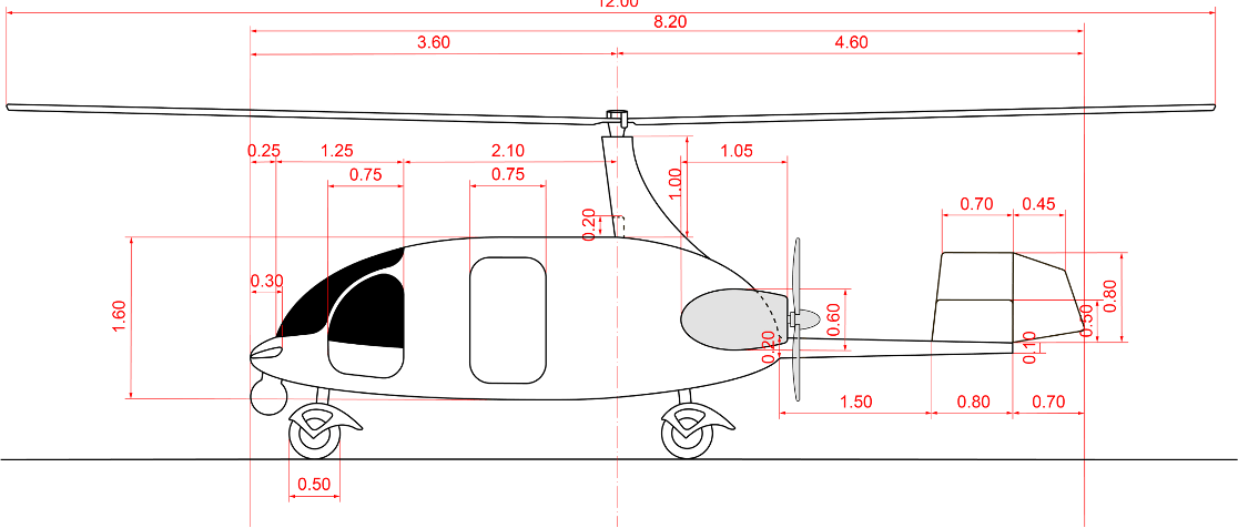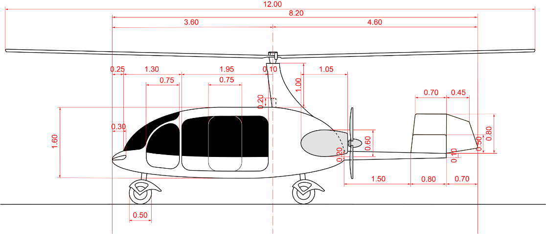 The AirCargo model will be able to take off and land using either sTOL (short Take Off and Landing) or VTOL (Vertical Take Off and Landing), depending on the rotor technology specified. With current standard technology, gyroplanes take off using forward motion to accelerate the rotors to flight speed and climb.